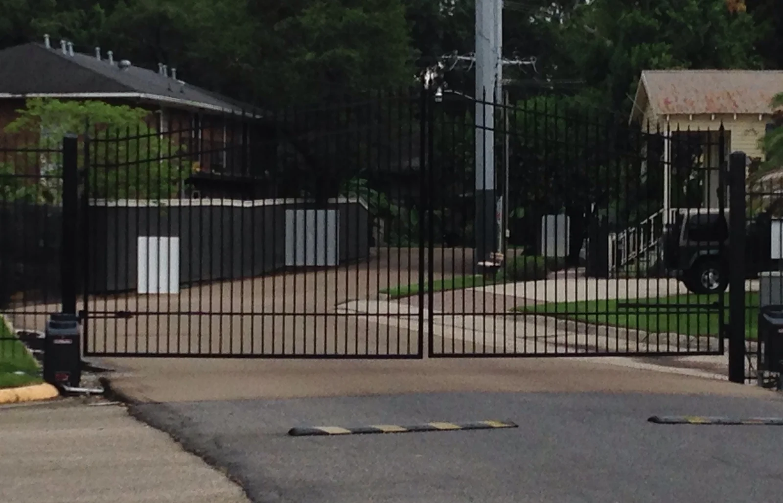 Gated road access as Tiger Manor Apartments